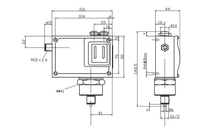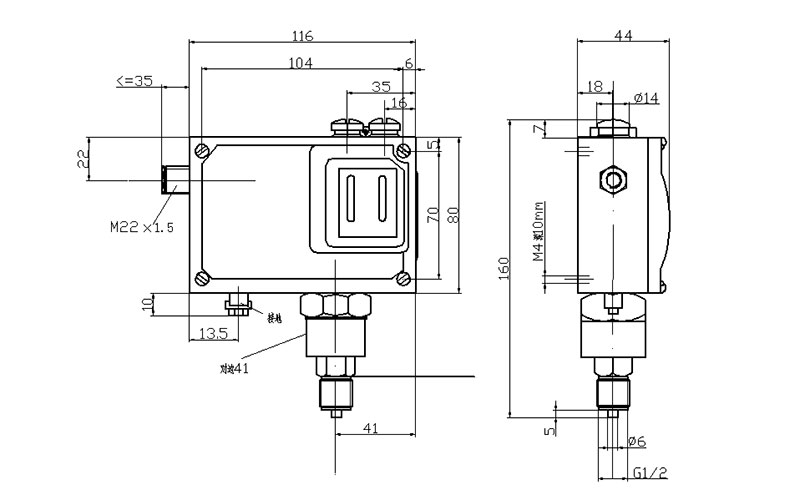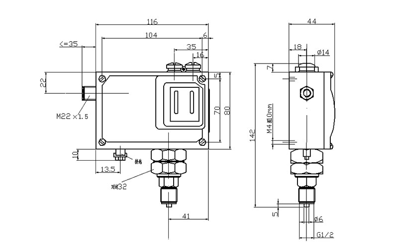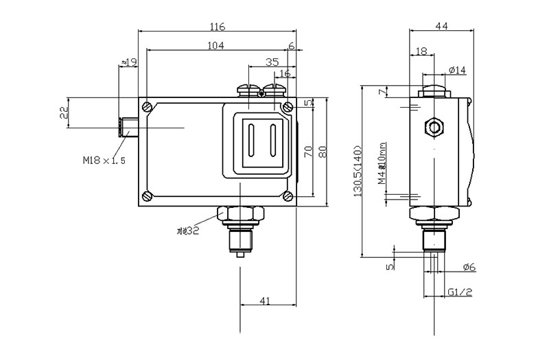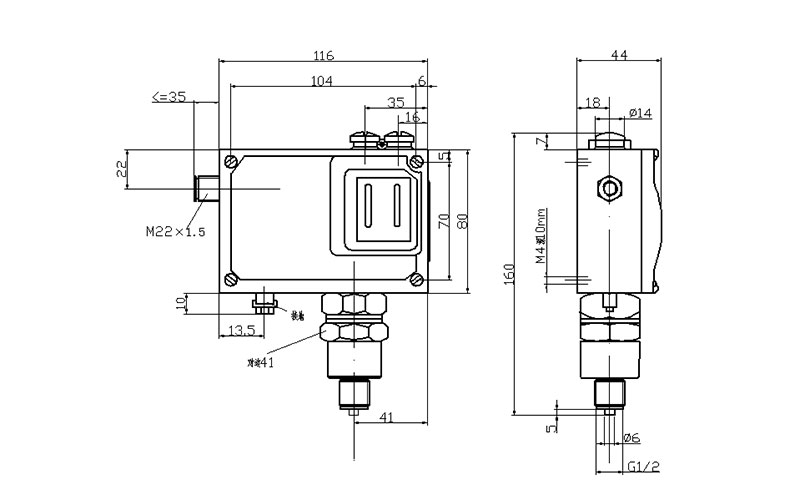 511/7D防爆壓力開關(guān)外形尺寸及安裝尺寸(單位:mm)
