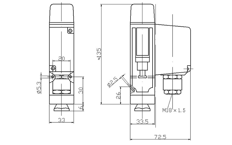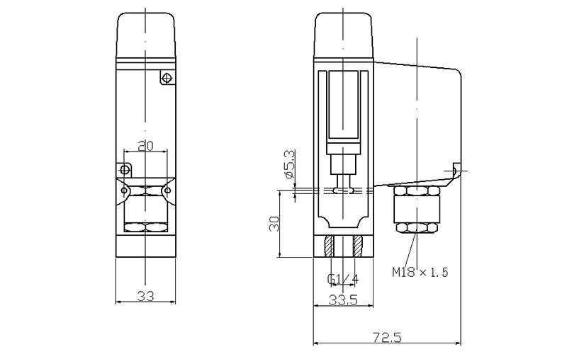 500/8D壓力開(kāi)關(guān)外形尺寸及安裝尺寸(單位:mm)