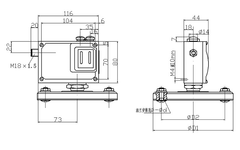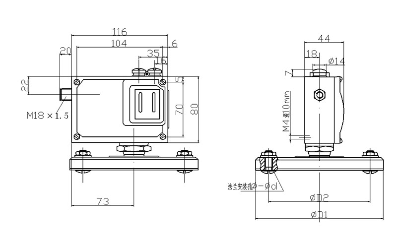 安裝(或拆卸)控制器時(shí)要特別注意:防止傳感器(法蘭盤(pán))與開(kāi)關(guān)殼體發(fā)生相對(duì)轉(zhuǎn)動(dòng)。 若客戶(hù)對(duì)法蘭尺寸有特定要求,可協(xié)商定制。
